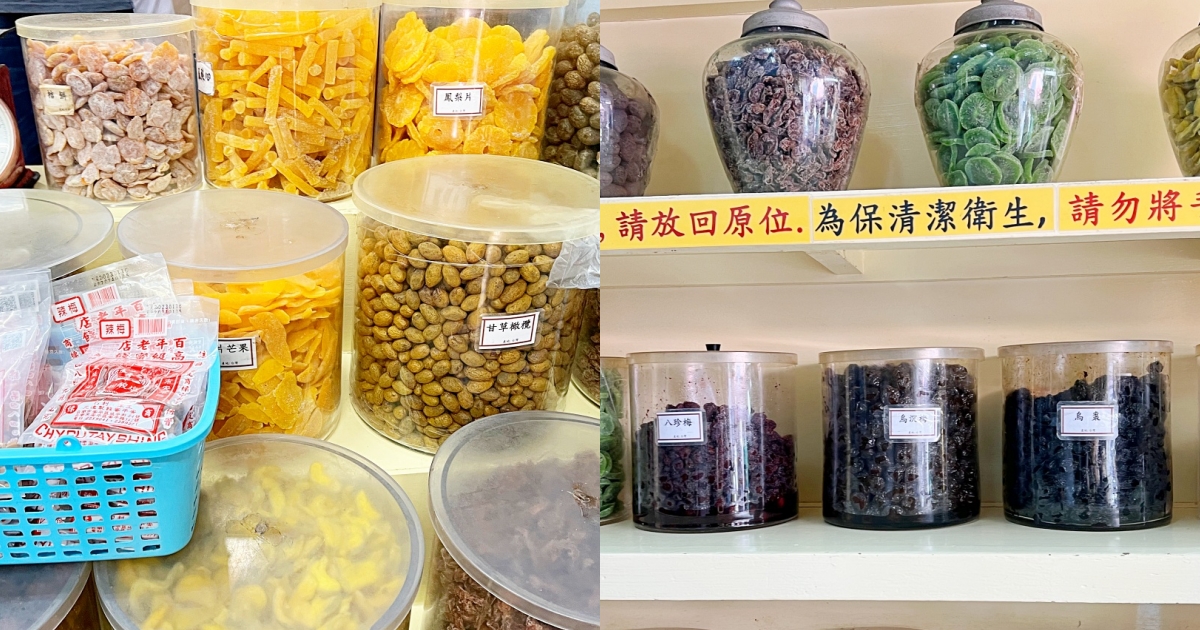 ▲古早味的蜜餞就是這樣透明罐裝,這些都是擺設用,千萬不要伸手去拿喔。