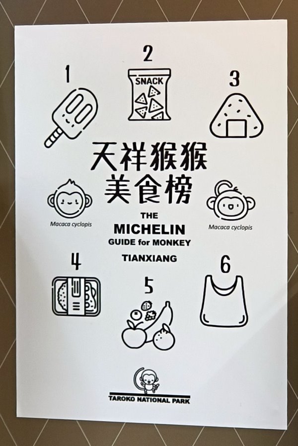 ▼不過天祥也有不少野生獼猴,大家可得把食物收好,避免被猴子搶食,也記得不要餵食猴子唷!