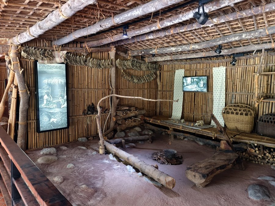 ▼花蓮太魯閣族的建築風格以竹屋為主,以竹材從地面往上構建,再以茅草覆蓋於屋頂上。