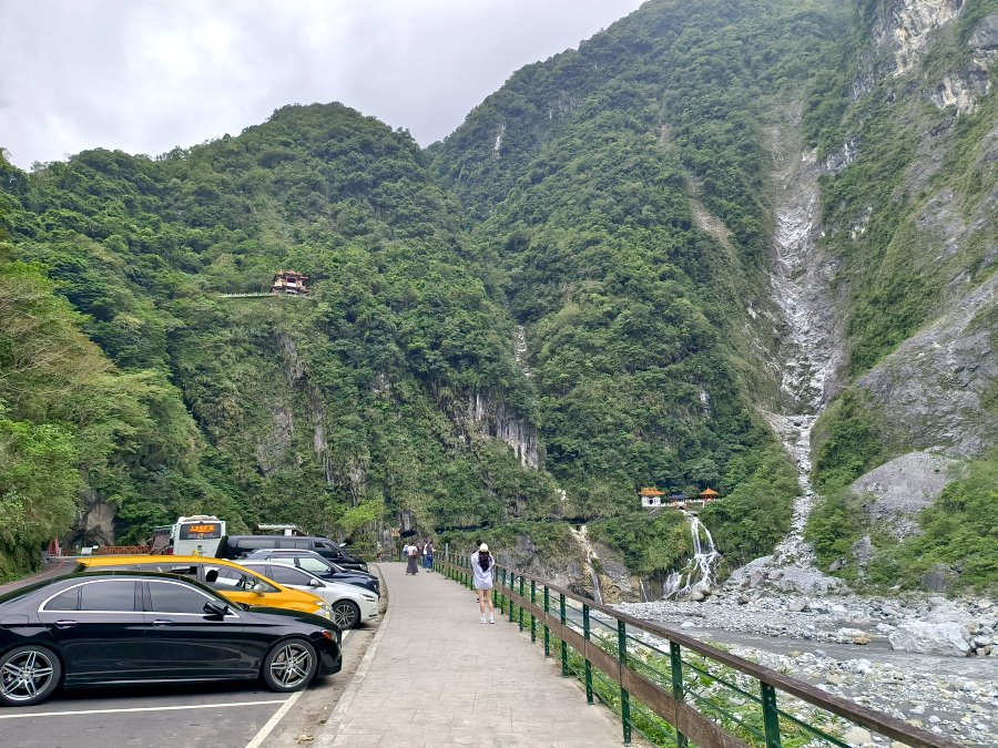 ▼從這裡還可以欣賞到太魯閣菩渡橋的美景,搭配牌樓也很漂亮啊~~接著我們就搭「台灣好行310太魯閣線」準備回程囉!