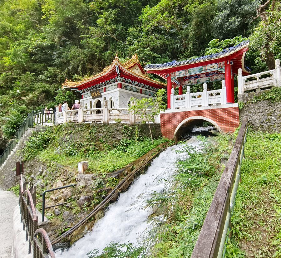 ▼「長春祠」就矗立在立霧溪谷的崖邊,這是為了紀念闢建中橫公路殉職人員所建立,祠邊湧泉長年飛瀑而下,公路局命名為「長春飛瀑」,也是非常有意義的地標。