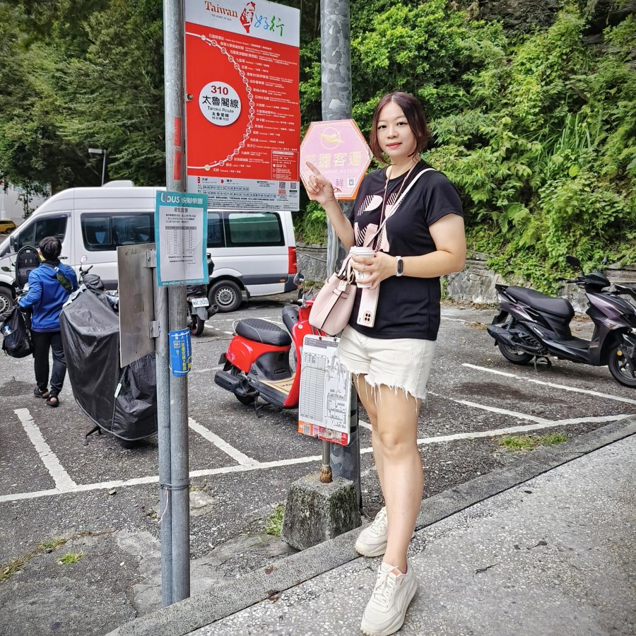 ▼台灣好行站牌的顏色非常鮮明,以大紅色系搭配310太魯閣線字樣,在遠處就能清楚看見站牌的位置!