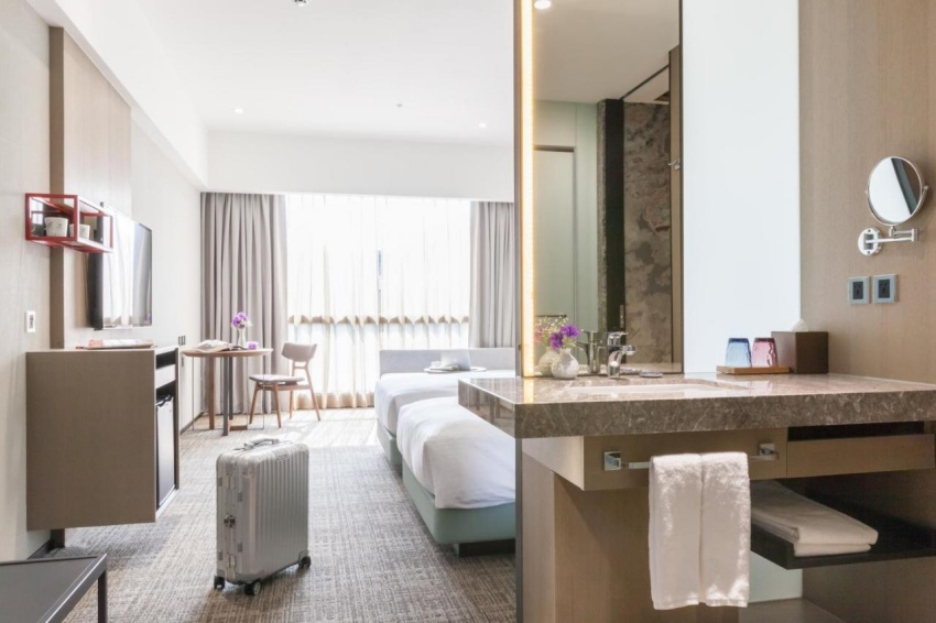 新悅花園酒店共有包含標準客房、精緻客房、家庭房、日式套房⋯等九種房型選擇,共有175間客房,室內佈置都相當典雅,有迎賓水果及免費汽水飲料,有需要也可以請飯店提供嬰兒床、澡盆等用品,畢竟是五星級飯店各種軟硬體都很齊全。