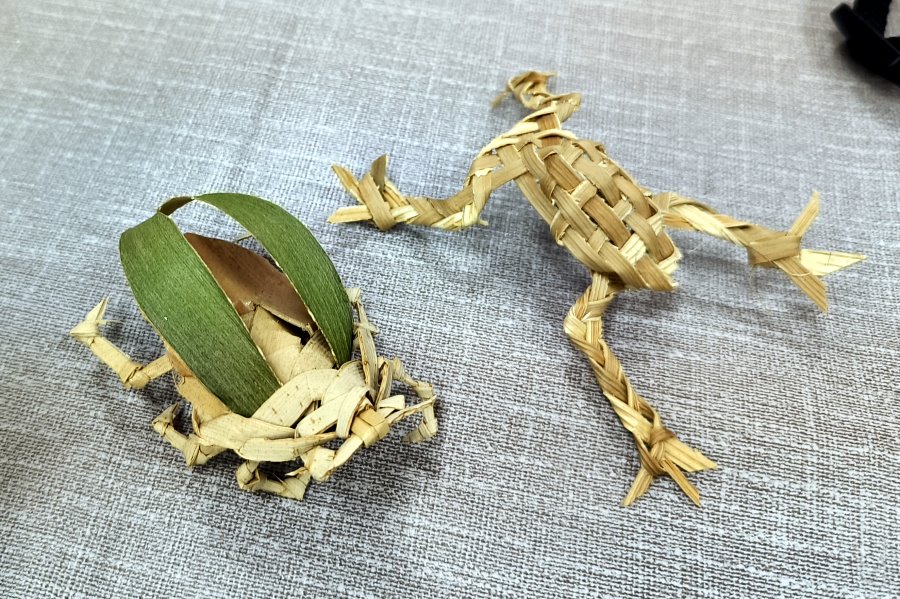 ▼這是大口做的孔雀,雖然沒有老師做得漂亮,但也很有自己的特色(自己說)~~哈哈哈!草編文化的有趣就在於可以憑藉自己的想像,做出一隻隻腦海中浮現的動物,而且真的會讓人想放下手機,好好的來創作一場!