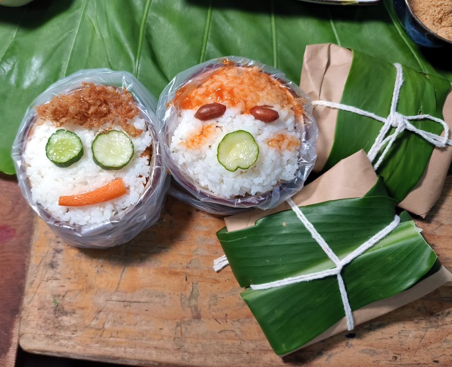 ▼另外一個DIY飯糰則是可以發揮創意,自行包製喜愛的配料,我們包好配料後還在上頭用食材作畫,整個變得俏皮許多(笑)!