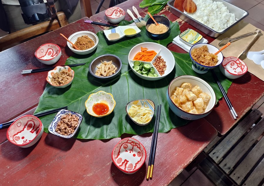 ▼當天也讓我們體驗一下礦工飯糰DIY,不過配料準備得比當年豐盛許多!