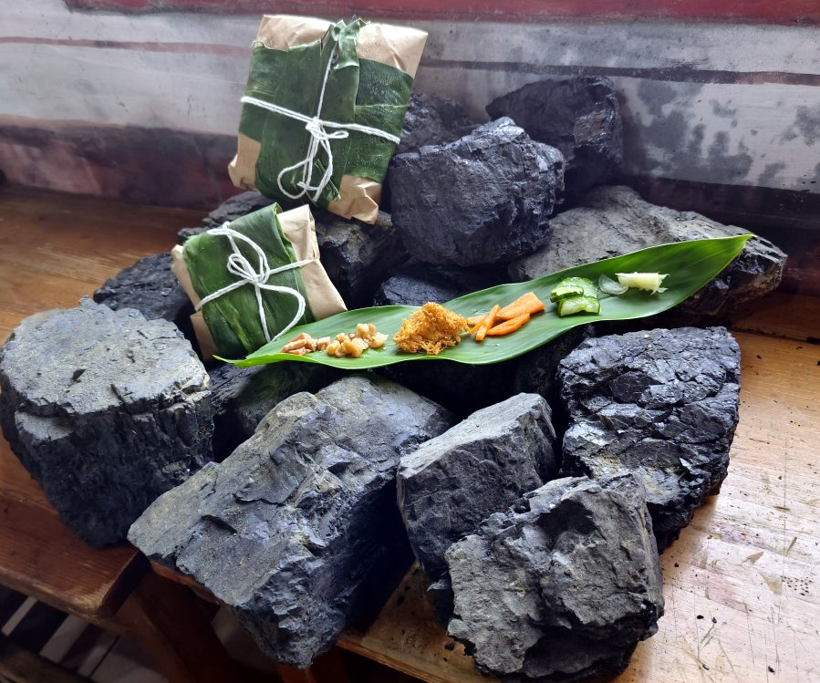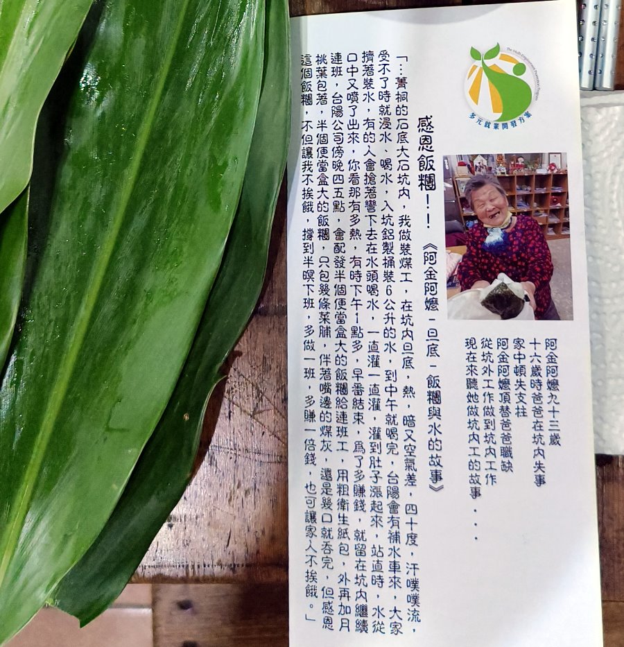 ▼當時的飯糰沒有這麼華麗,只有簡單用粗衛生紙外頭加上月桃葉包著,配料也只有一樣菜脯,但對於當時的礦工來說就是最棒的一餐了!