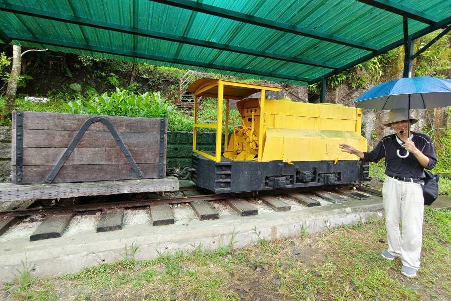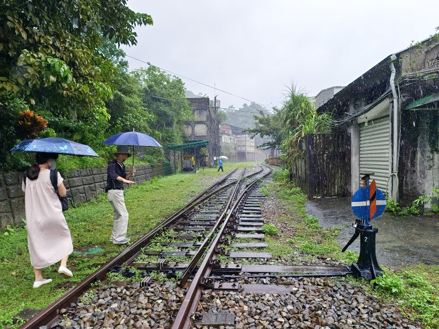 ▼我們撐著傘漫步在鐵軌旁,聽著導覽人員述說著菁桐過去礦業的輝煌歷史,感覺別有一番滋味。