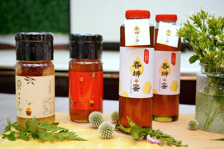 ▼四種蜂蜜分別為鴨腳木蜜、荔枝蜜、龍眼蜜、紅淡蜜,都是在地生產的優質蜂蜜。