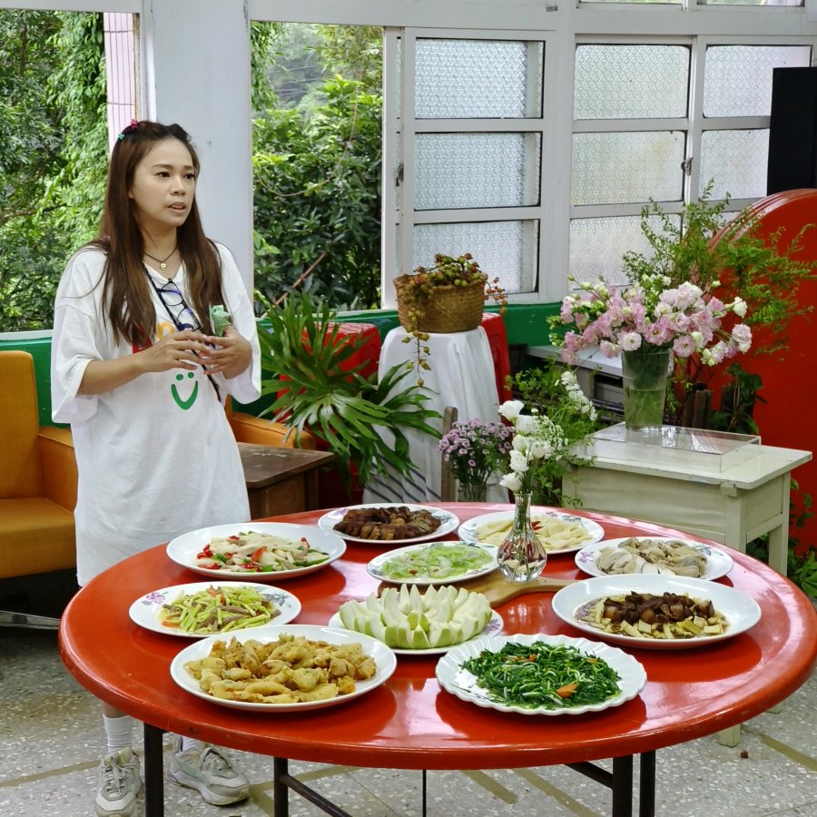 ▼午餐我們來到紫東社區享用美味的在地風味餐,紫東在地餐桌以土生土長為主題,搭配花藝、永續等概念,結合在地農產品、食材,由地方媽媽烹調出一道道色香味俱全的料理,讓大家以自取的方式享用。