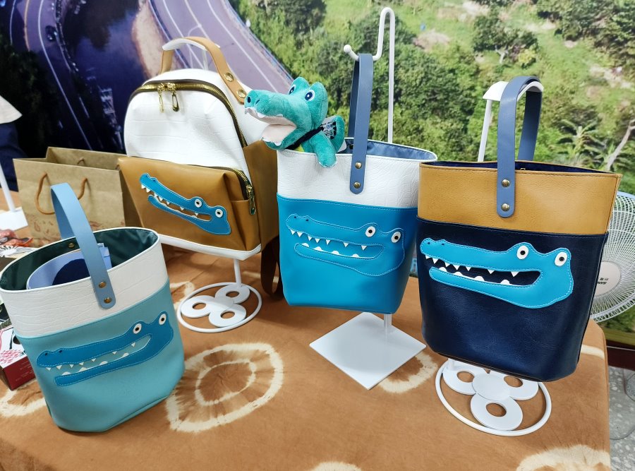 ▼另外也有以「淡碇鱷」為主題的手作包款,質感也相當好,另外還有淡碇鱷的小公仔也很吸睛唷!