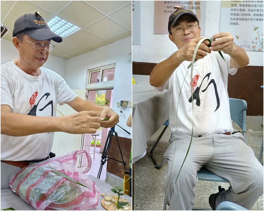 ▼接下來我們要來體驗平溪在地人代代相傳的草編文化,早期的平溪沒什麼資源,爸爸要進礦坑工作,只見媽媽拿出隨手可得的芒草就開始編起各種物品,像是小雞、小鴨、牙刷等,就是小朋友最棒的玩具了!當天的老師是一位傳奇人物,這位林三元老師原本是中華電信基金會執行長、台灣微軟副總,現在拋下一切,甘於擔任一位傳承草編文化的街頭藝人,只見他熟練的抽出芒草,巧手一摺就是一隻孔雀,或是一隻魚,看得我們是目瞪口呆,從來沒想到芒草可以變身為可愛的小動物!