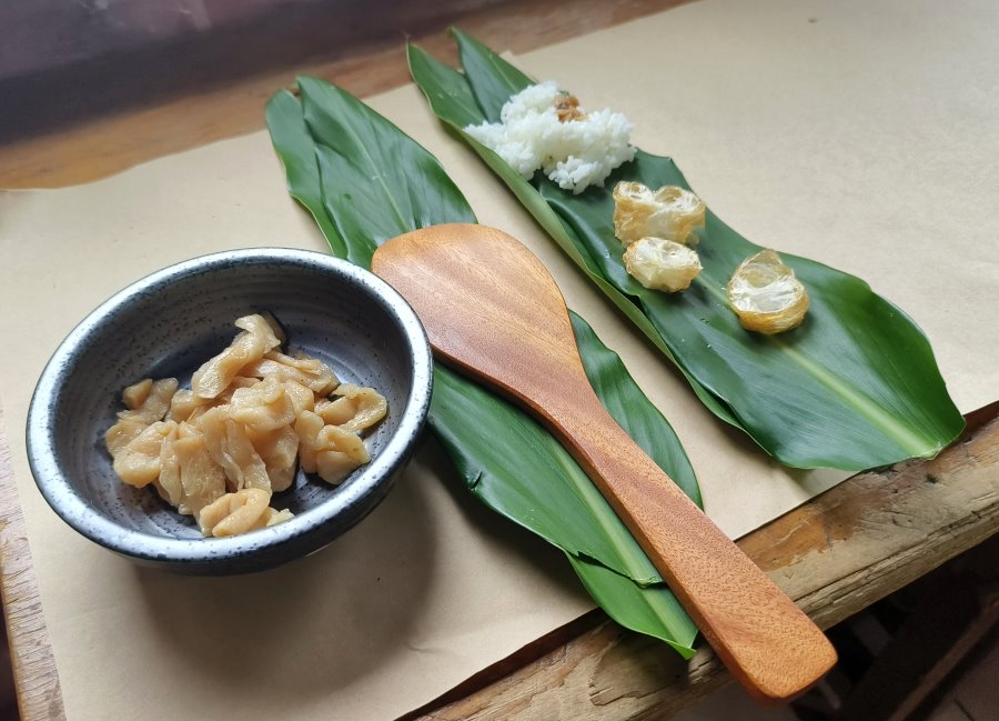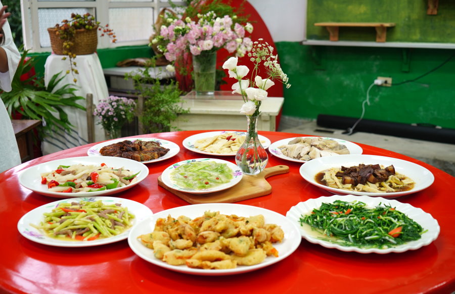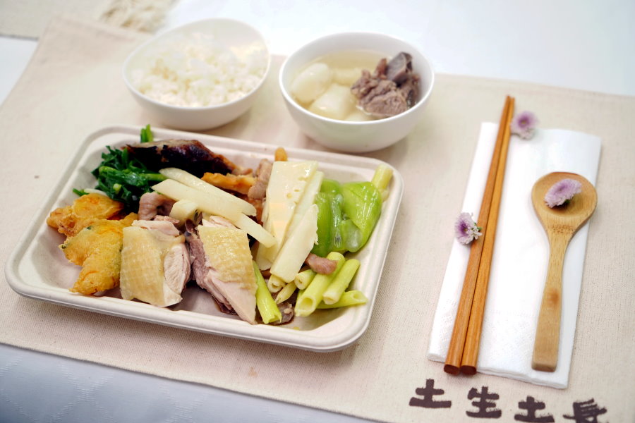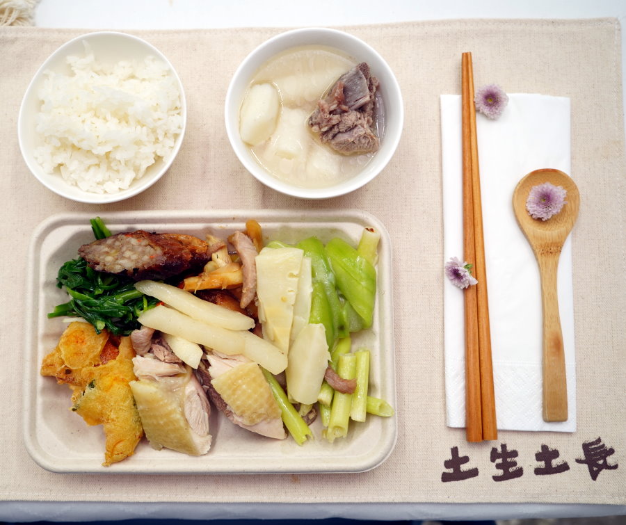 ▼這裡採用多種在地食材,包括放山雞、箭筍、珠蔥、芋絲雞捲、豆薯、礦工爌肉等,新鮮又美味。