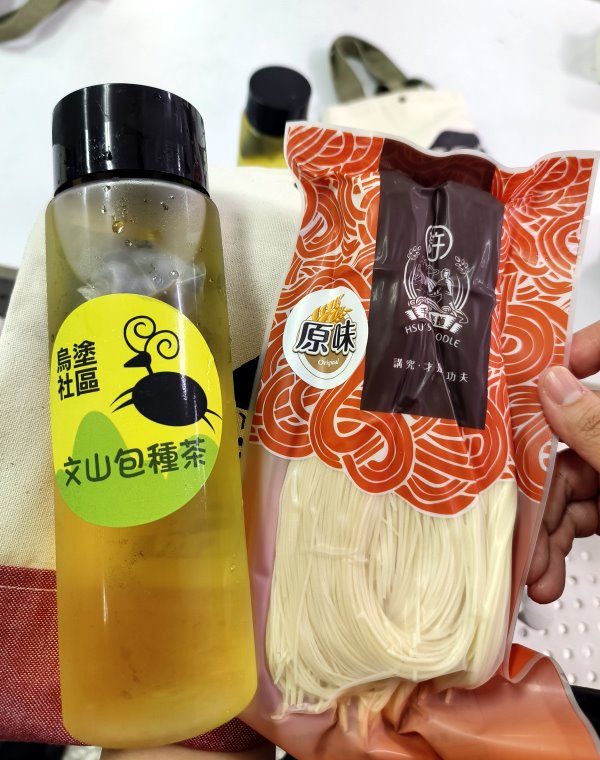 ▼在這裡我們享用了烏塗社區的文山包種茶,喝起來清香甘潤,沒有什麼苦澀味,爽口又甘甜;另外這款許家麵線則是比較適合祝壽的長麵線,採用真空包裝更能保鮮。