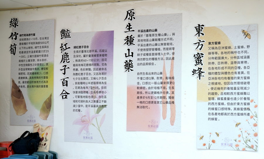 ▼下一站我們來到位於平溪區東勢里的「紫東社區」,這裡將廢校20年的平溪國小東勢分校轉型活化為生態教育空間,對於推廣在地產業、藝術社造、實驗教育、銀髮俱樂部等多元活動都有不錯的成績。