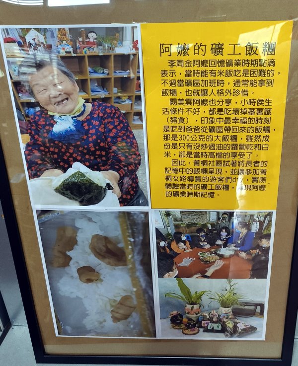 ▼當天最特別的就是要來體驗DIY礦工飯糰啦!李周金阿嬤年輕時為了養家而進入礦坑工作,當時有米飯吃就已經是很困難的事了,進入礦坑工作不僅悶熱潮濕,上廁所也非常不方便,如果想多賺點錢要加班的話,台陽公司會在傍晚四五點發一個半台斤重的飯糰給連班工,裡頭只有白飯簡單包著幾條沒有炒過油的蘿蔔乾,吃完繼續工作,甚至還會做到隔天凌晨四五點才下工,光是想像這畫面就覺得超級辛苦!