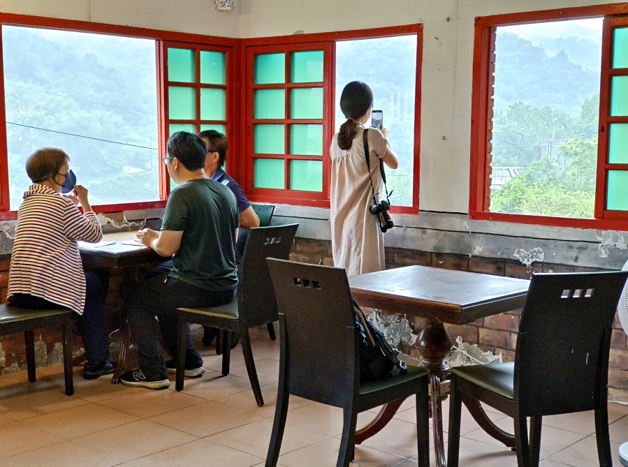 ▼紅磚建築在這裡屹立了超過百年的光陰,彷彿在述說著礦工們當年的故事;從窗框望出去可以看見老街與鐵道的景色,很適合放慢腳步細細品味。