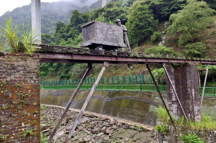 ▼一旁的小橋刻意保留昔日運煤橋的遺跡,上頭還有一個礦工推著煤台車的雕像,不難想像昔日煤礦業興盛的輝煌時代。