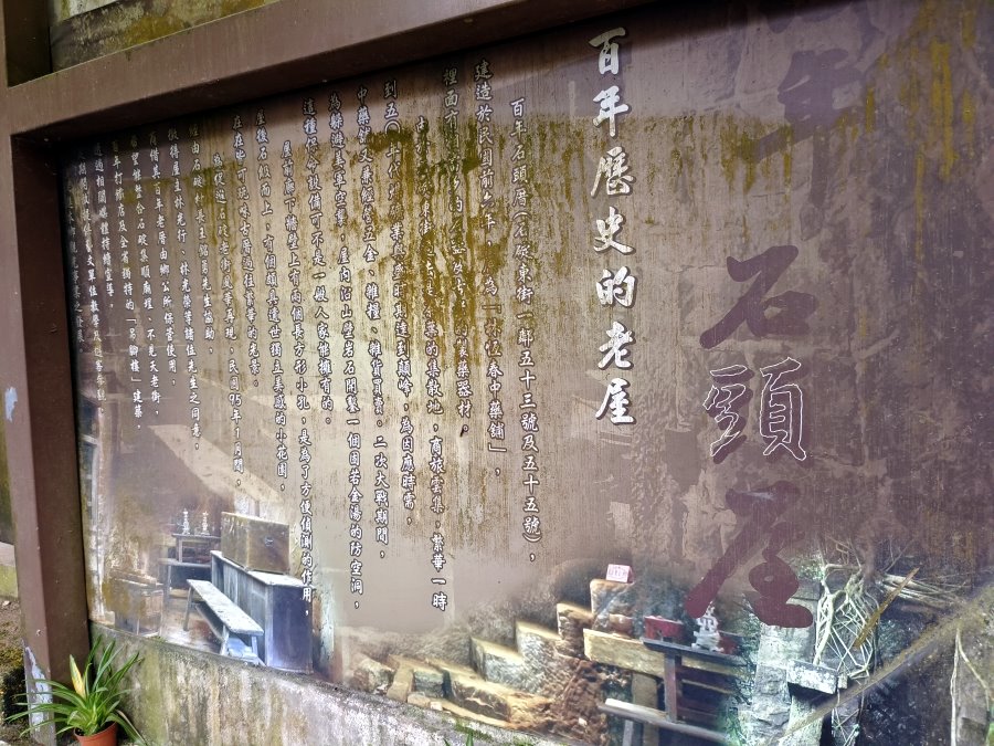 ▼「百年石頭屋」建於民國前6年,至今已有將近120年歷史,原為「林恆春中藥鋪」,裡頭有擺設不少中藥櫃、石臼、手秤等工具,二次大戰期間為躲避空襲,內有建造一個防空洞,在當時來說可是非常少見的保命設備,不過最近在重新整修無法入內參觀,只能期待光華重現。