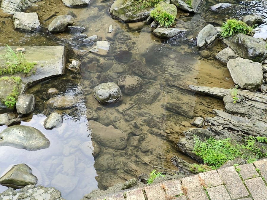 ▼溪水清可見底,還能看見不少魚群悠游其中,夏天也是當地小朋友的玩水聖地。