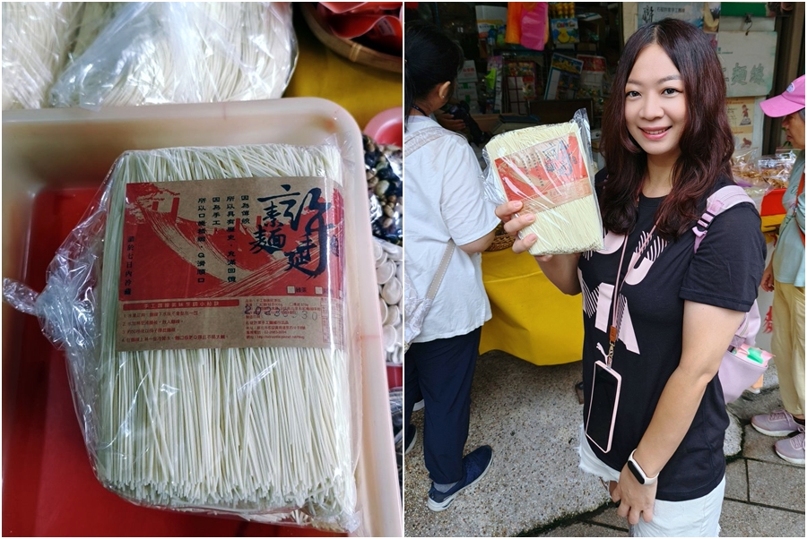 ▼我們也買了一大包回家,他們家的麵線特別在於使用石碇山泉水簡單搭配鹽巴、麵粉製作,講究燙麵時間,以傳統古法製成,沒有添加防腐劑及色素香料,吃起來柔軟又帶點彈性,有興趣的朋友也可以報名許家麵線DIY,就能體驗手作麵線、流水麵等活動囉!
