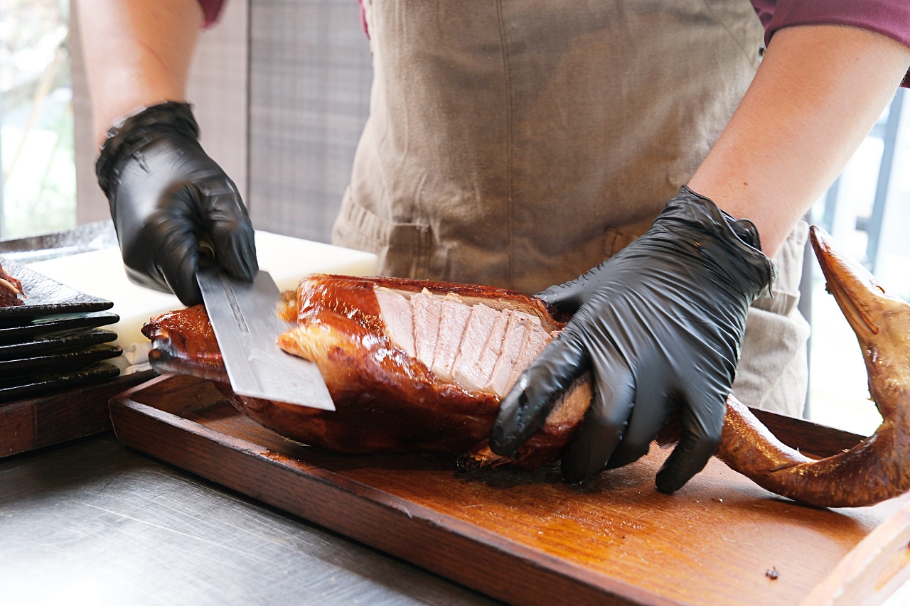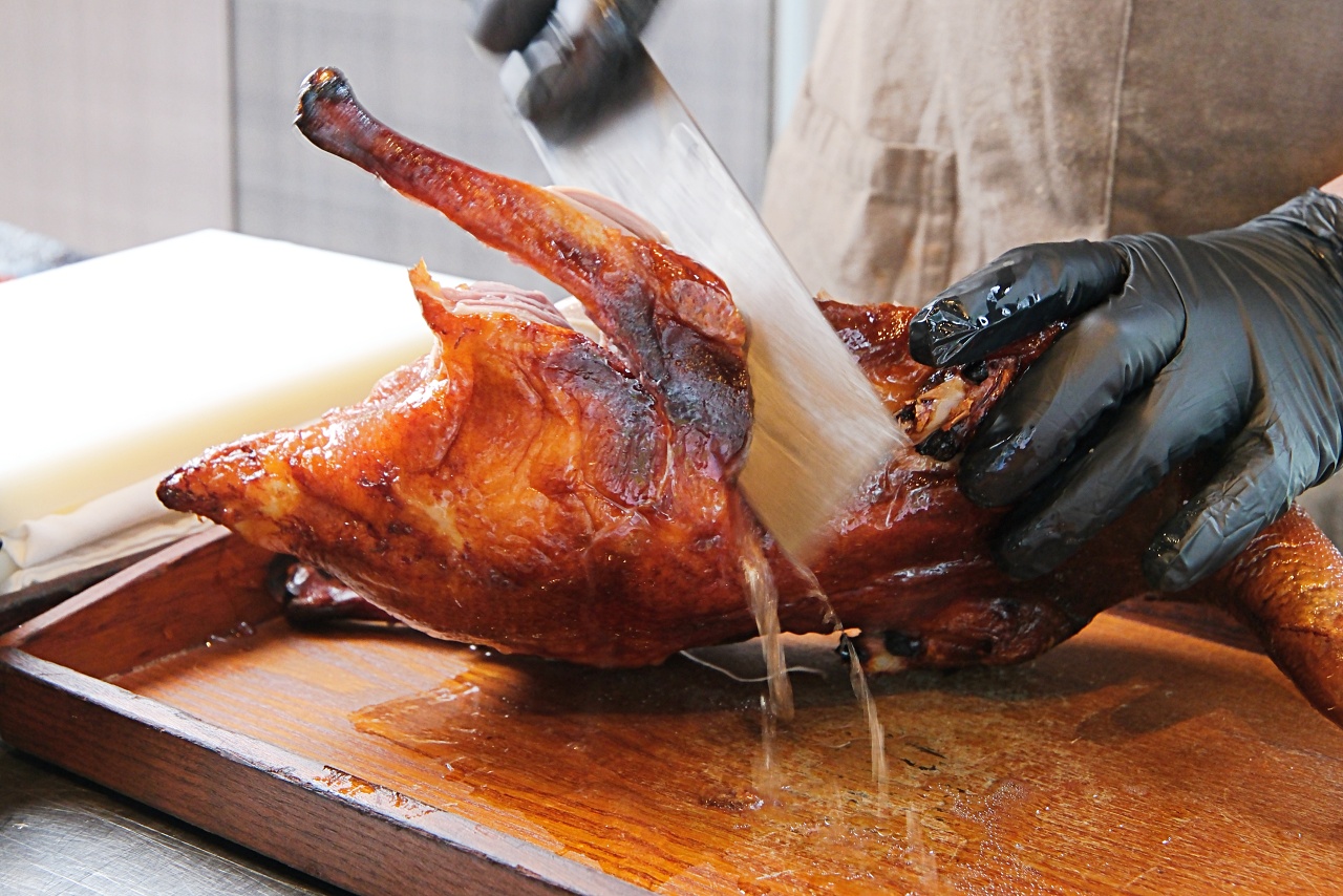 很推薦可以來這裡直接預訂兩桌,就會有一整隻烤鴨推到桌邊做表演秀。