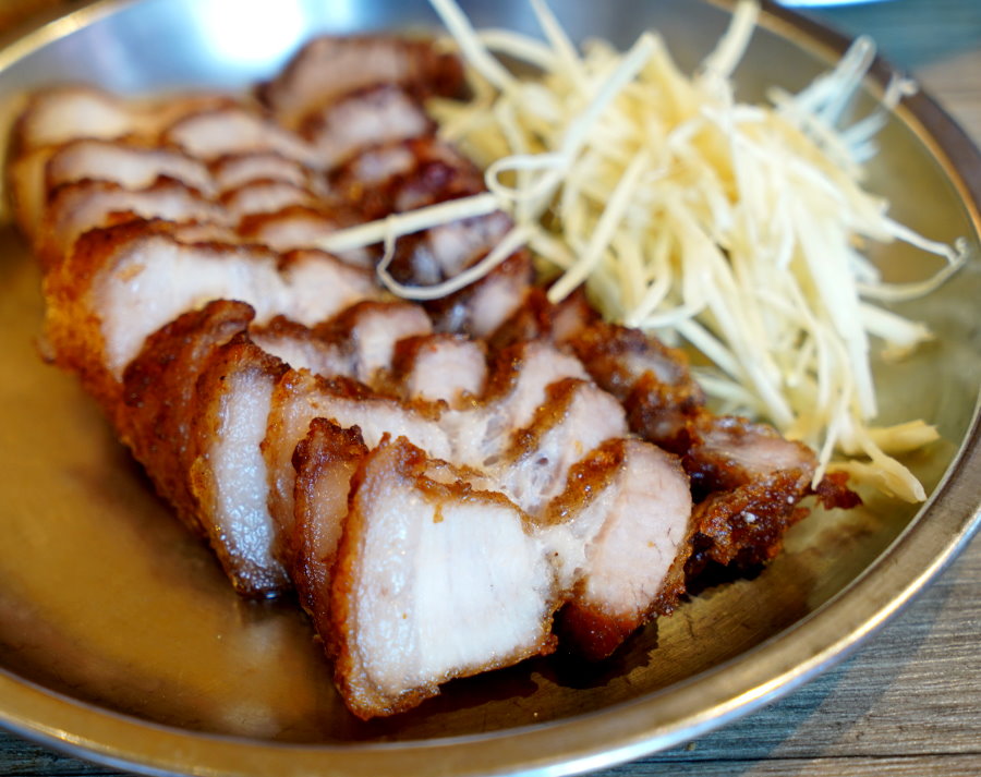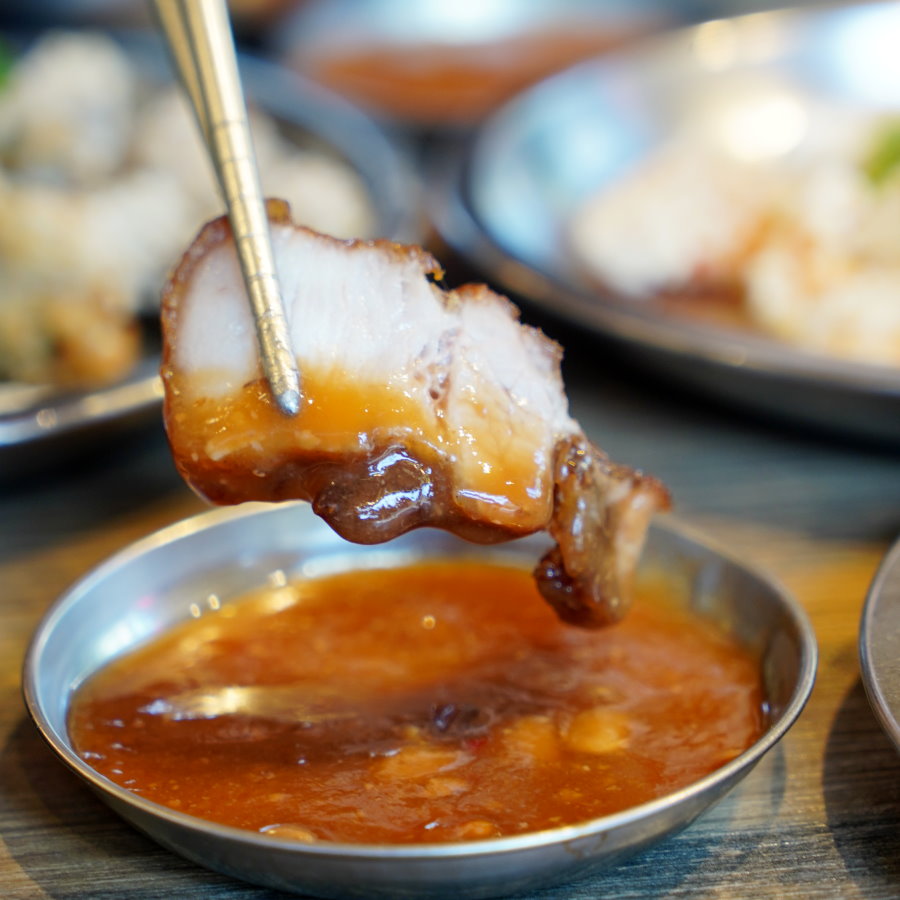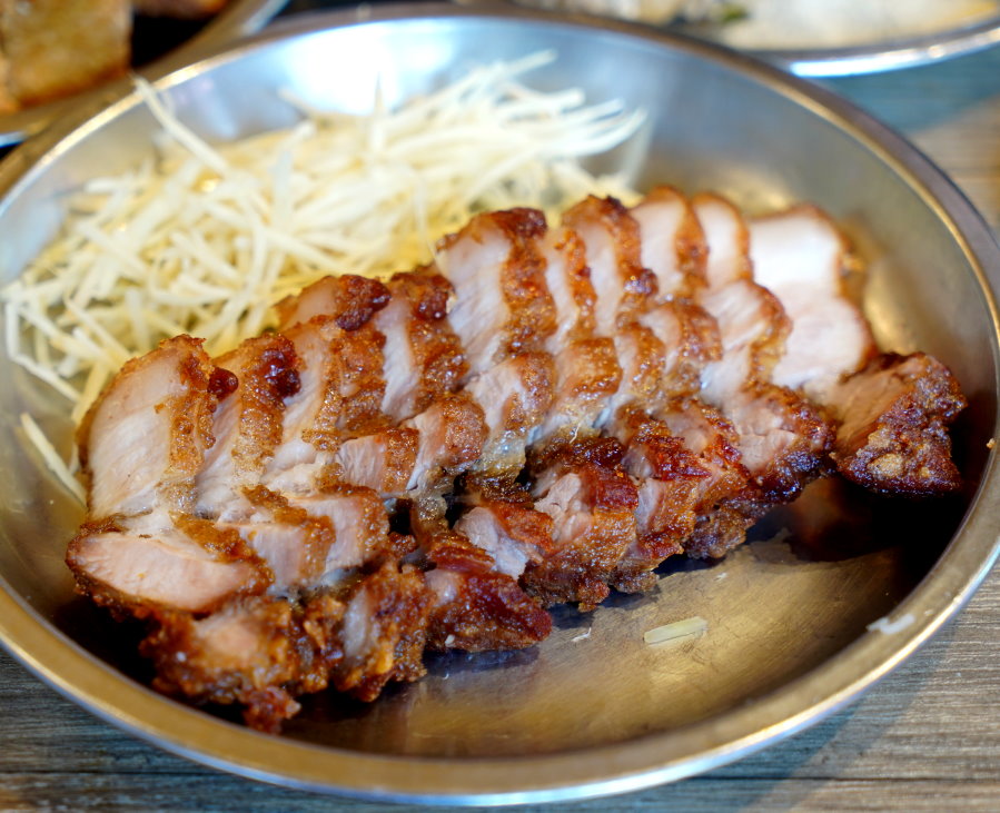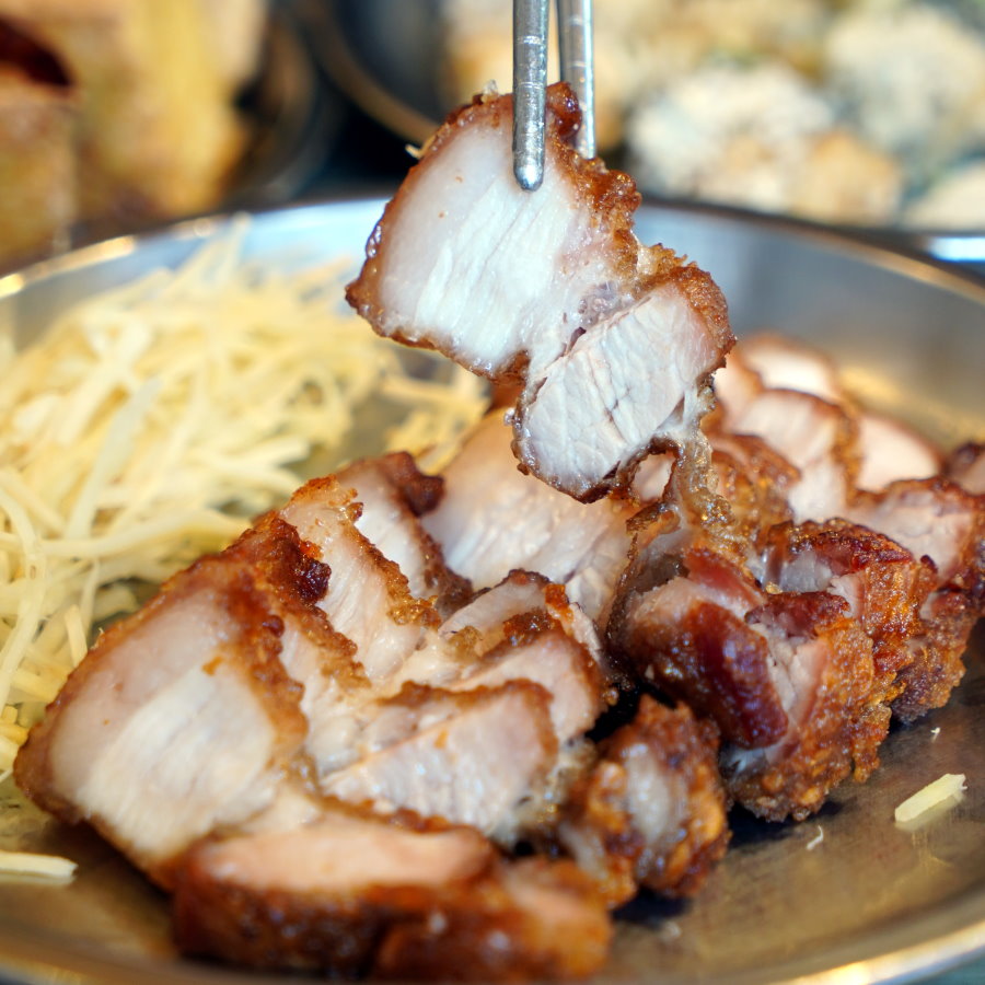 ▼酥皮紅燒肉,三層肉採用胡椒、五香等辛香料下去醃製而成,再裹上番薯粉下去油炸,不僅肥瘦比例適中,油炸功夫也是好吃的關鍵之一。