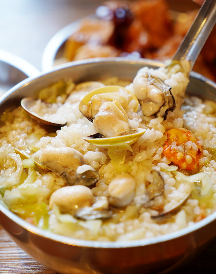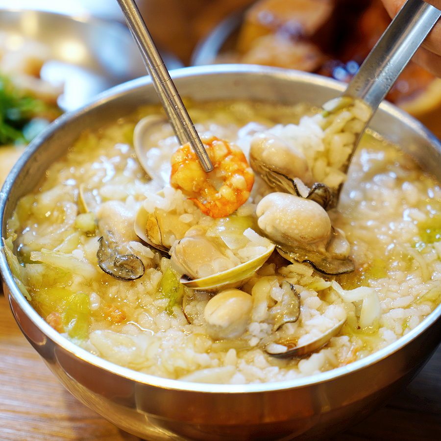 ▼清鮮海產粥,料多實在的海產粥是現點現煮的美味,同樣以大骨湯為基底,搭配海鮮、高麗菜、米酒、醋等配料下去烹煮,光看就讓人口水直流。