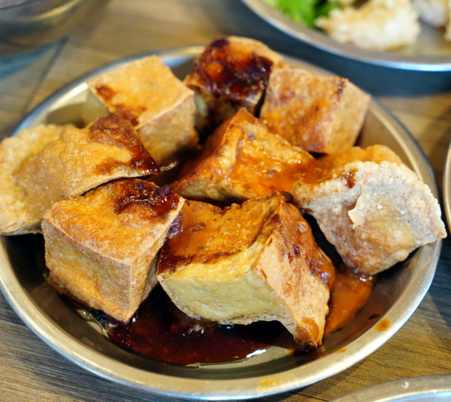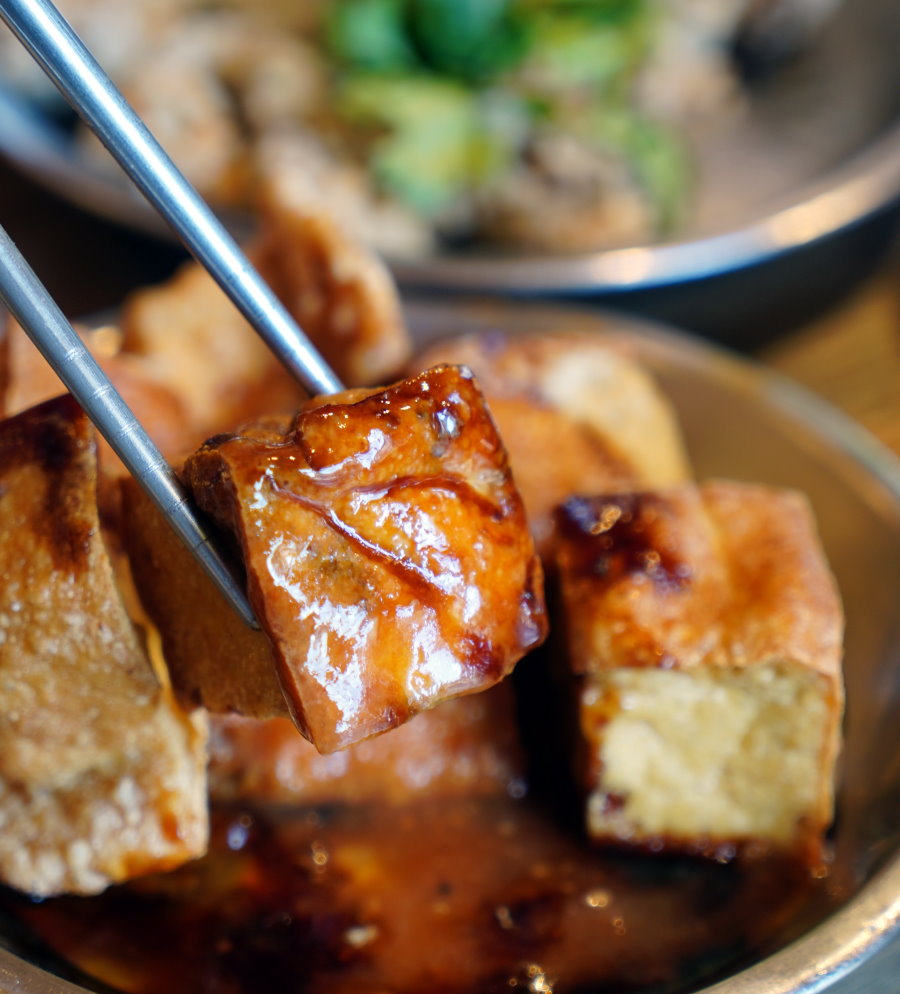 ▼炸豆腐,不僅份量十足,外酥內軟、盈滿豆香的口感搭配醬油膏+豆瓣甜辣醬也很對味,吃完整個都飽呆了(笑)!