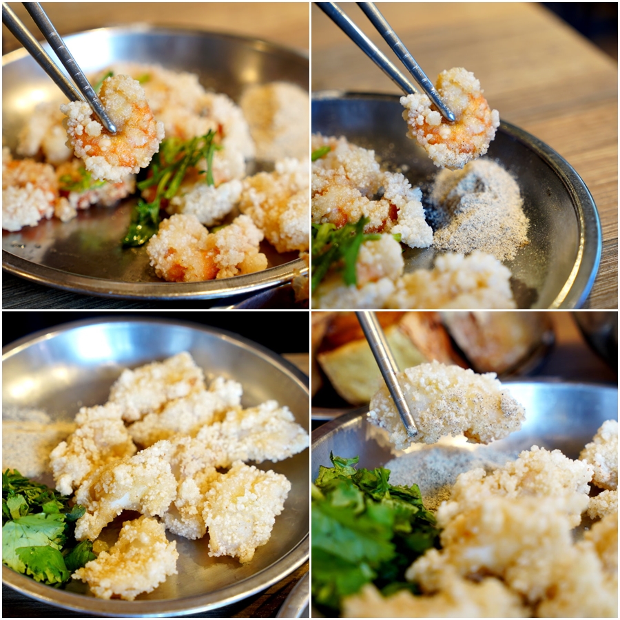 ▼炸蝦仁、炸花枝也是走一種酥脆又帶點Q勁路線,簡單搭配胡椒鹽就很美味,配粥吃也很剛好。