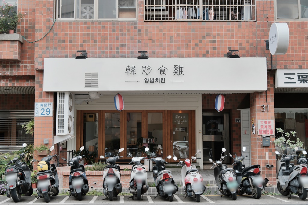 韓好食雞位於演藝路上,附近路邊都有機車與汽車的停車格,還蠻好停車的!