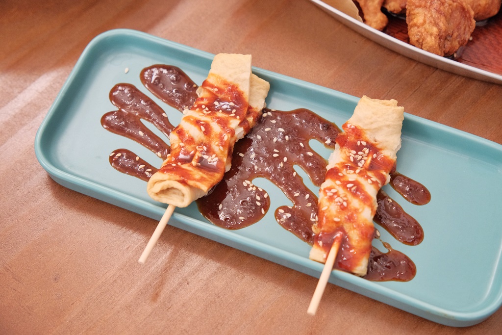 一串才10元!一般魚板串都是配湯,這邊則是搭配韓式甜辣醬,還蠻特別的~