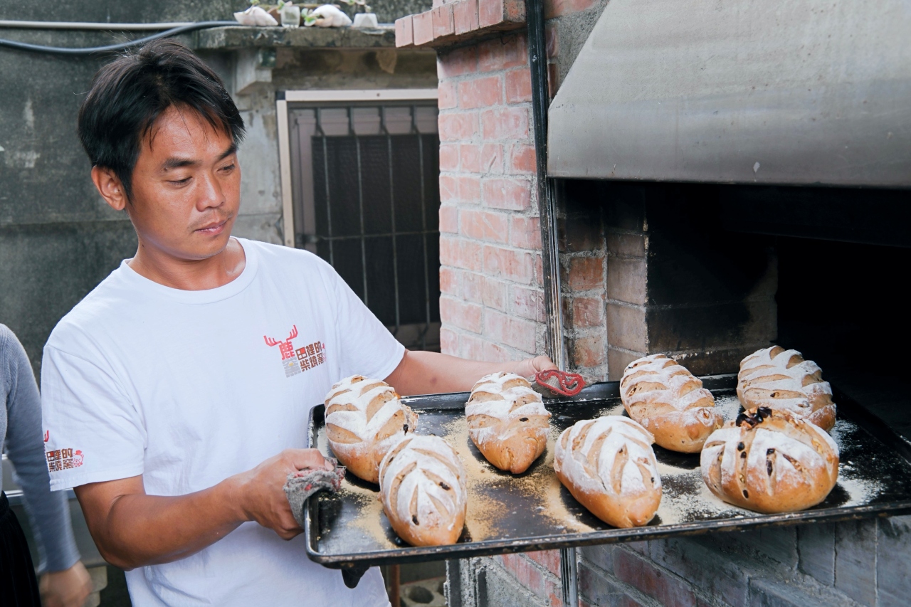 「鹿窯柴燒窯烤麵包」的老闆吳學展,原本是在台中市知名麵包坊工作,離開城市後回到家鄉,把食農教育理念跟在地農作物結合,讓農作體驗與消費者有進一步的接觸,在鹿北社區開設了「鹿窯」用長年累積的專長在家鄉做事。