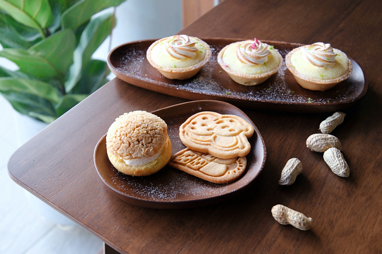 老闆娘家中長輩是從事花生種植,因為從小看見長輩們辛苦的栽種過程,更想要把傳統的農作物「花生」轉型成具有更好價值的產品。於是在這間小巧可愛的甜點工作室裡出現了評價很高的「花生泡芙」,外皮酥脆可口,中間的奶油餡有著濃郁花生香氣。