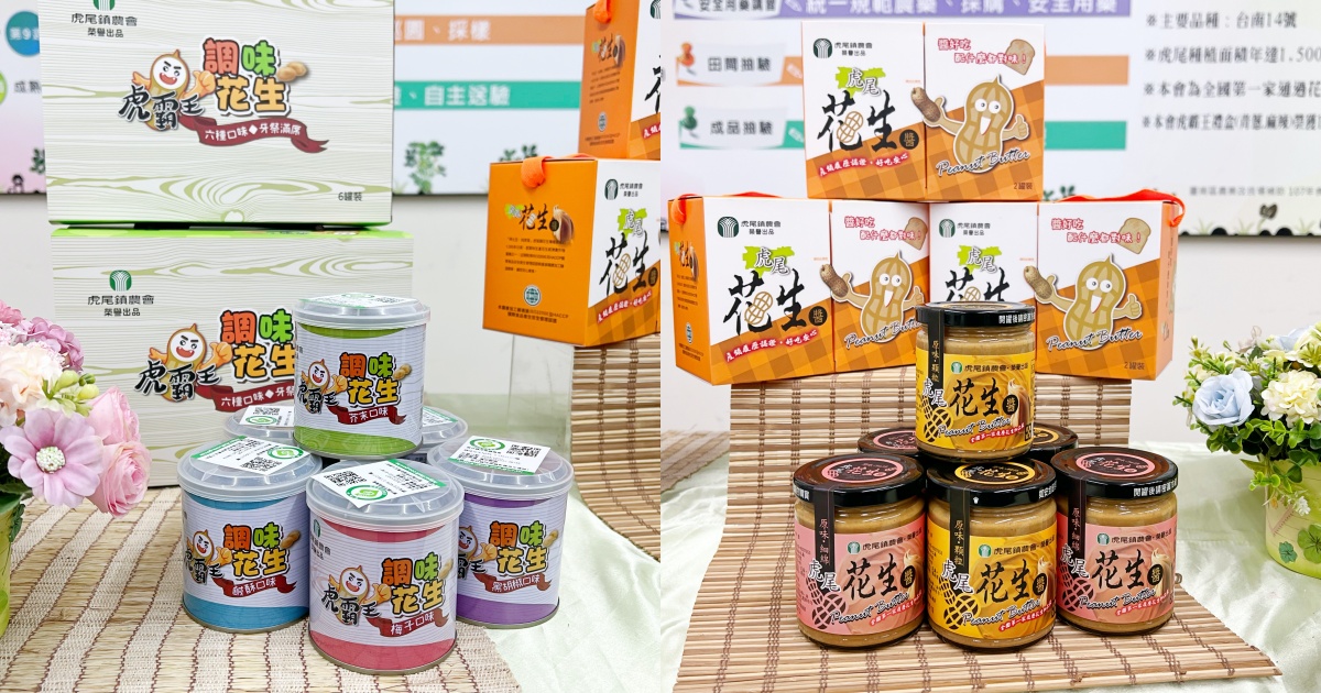 如果喜歡風味多樣的花生產品,那豬飛首推虎霸王花生系列!由虎尾鎮農會推出的時尚花生伴手禮,口味多樣:麻辣、香蔥、蒜片、小魚乾..等等都很受歡迎。最近又跟在地知名的「阿甘薯叔」聯手推出新口味,像是麻辣薯叔、奶油香蔥薯叔,地瓜配花生,有創意又好涮嘴。