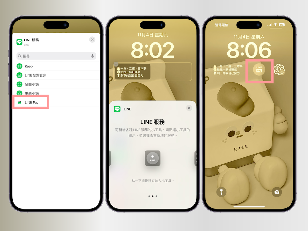 步驟 3、LINE Pay 就會出現在鎖定畫面小工具中。