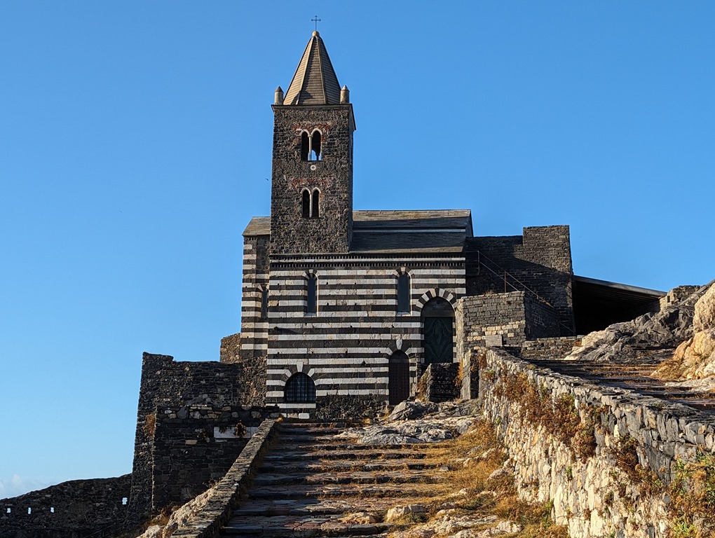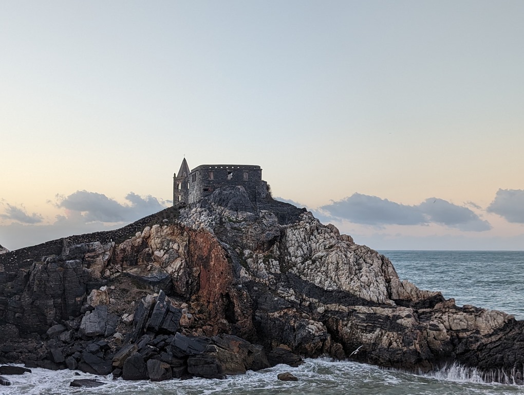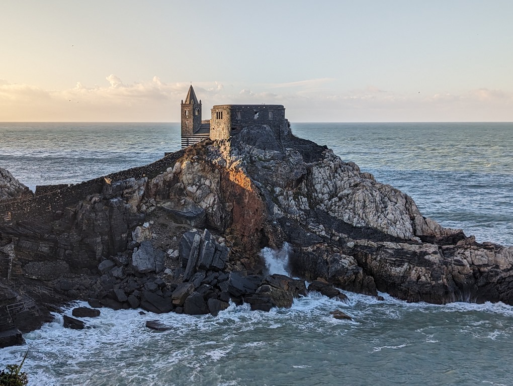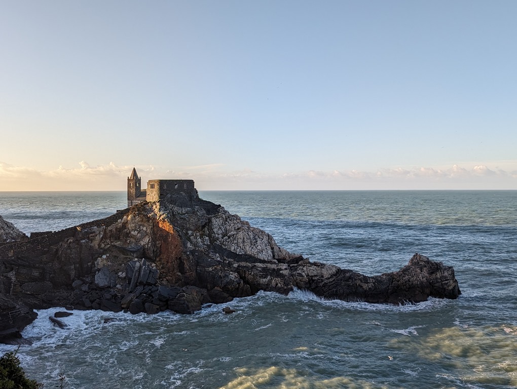 居然有座教堂就佇立在海邊的懸崖上,這是 Chiesa di San Pietro,這場景讓我決定等到日出後再上來一次看看不同光線下的景色。