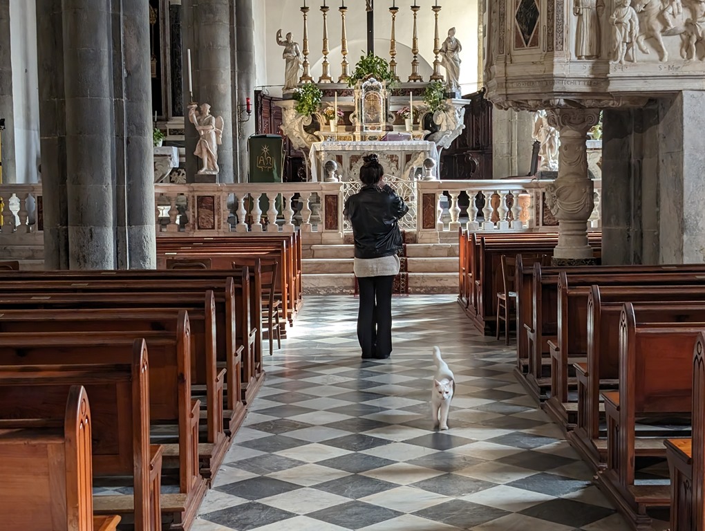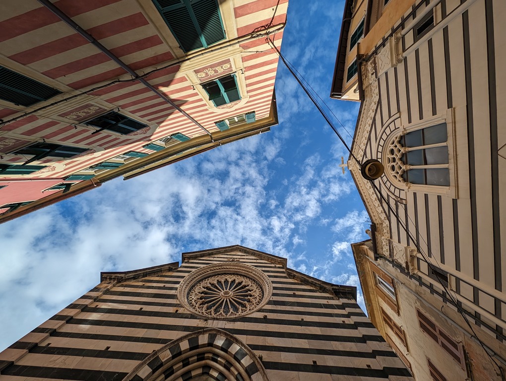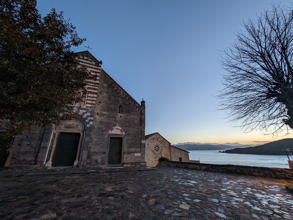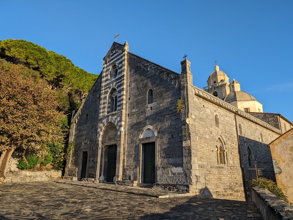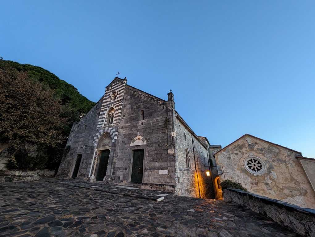 Chiesa di Santa Margherita 教堂也值得進去走走,反正都免費,不過我要說的是,教堂後面的有條小徑通往 Monterosso,從上面往下拍也非常美麗,不過這次因為封閉沒有辦法走到最好的拍攝點,天色也偏暗,所以只好使用 Google 相簿修圖大法處理一下。