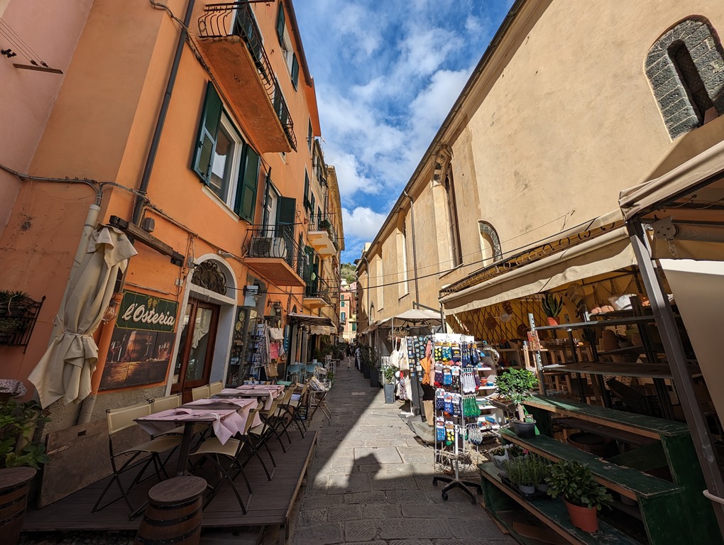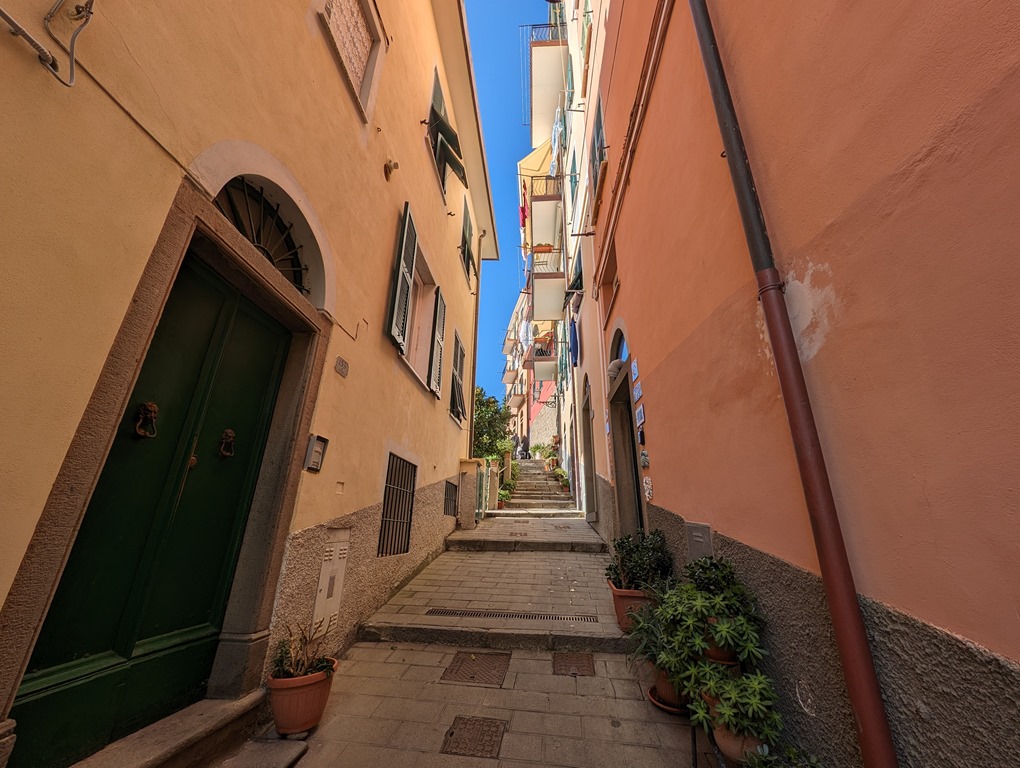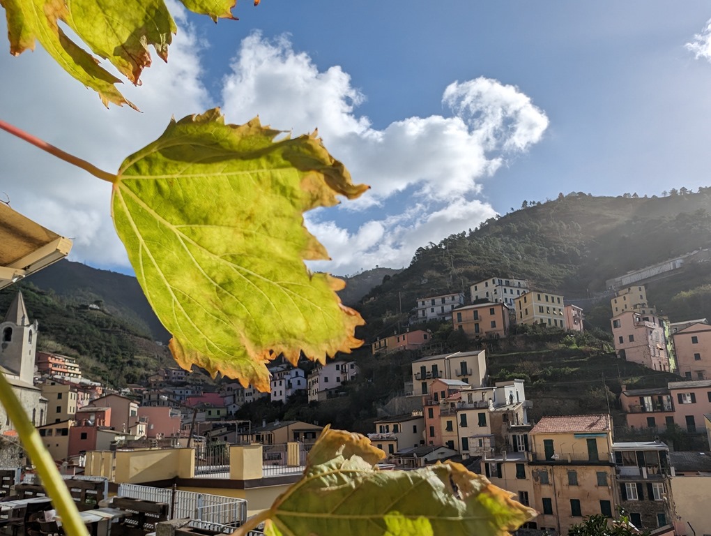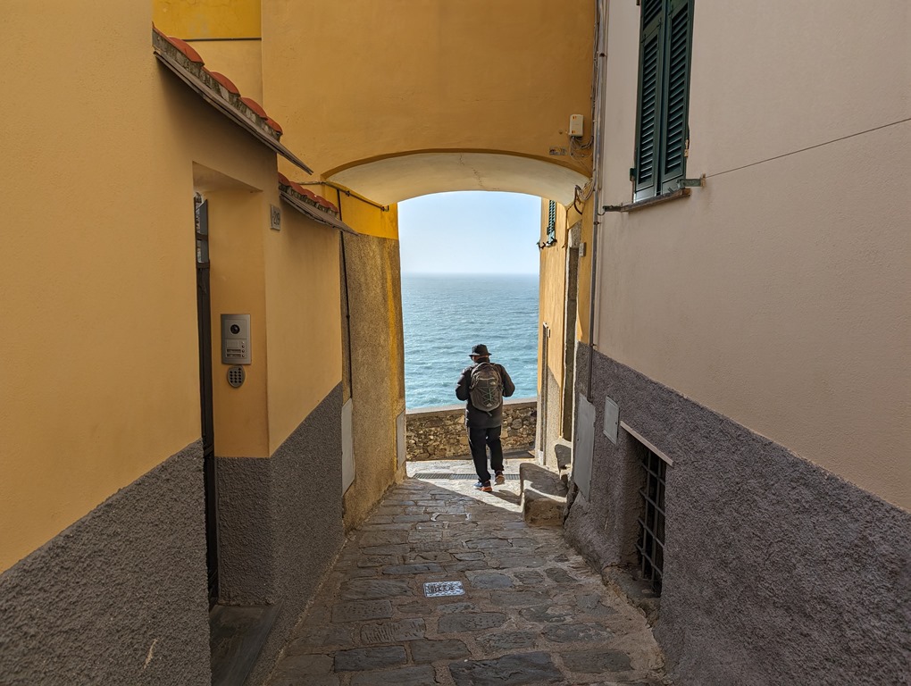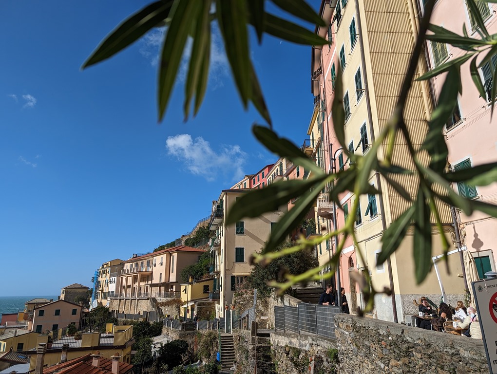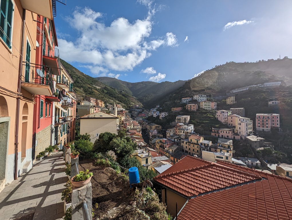 街區的盡頭還能遠眺 Manarola,不過如果要拍照,就只能超過 150mm 的長鏡頭比較合適。
