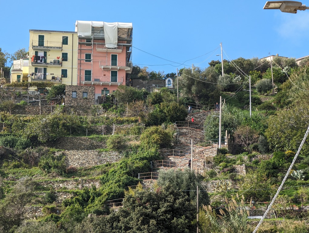 而 Corniglia 是唯一街區沒有依著海的村莊,從車站到街區必須要爬上 300 多層階梯才會抵達。