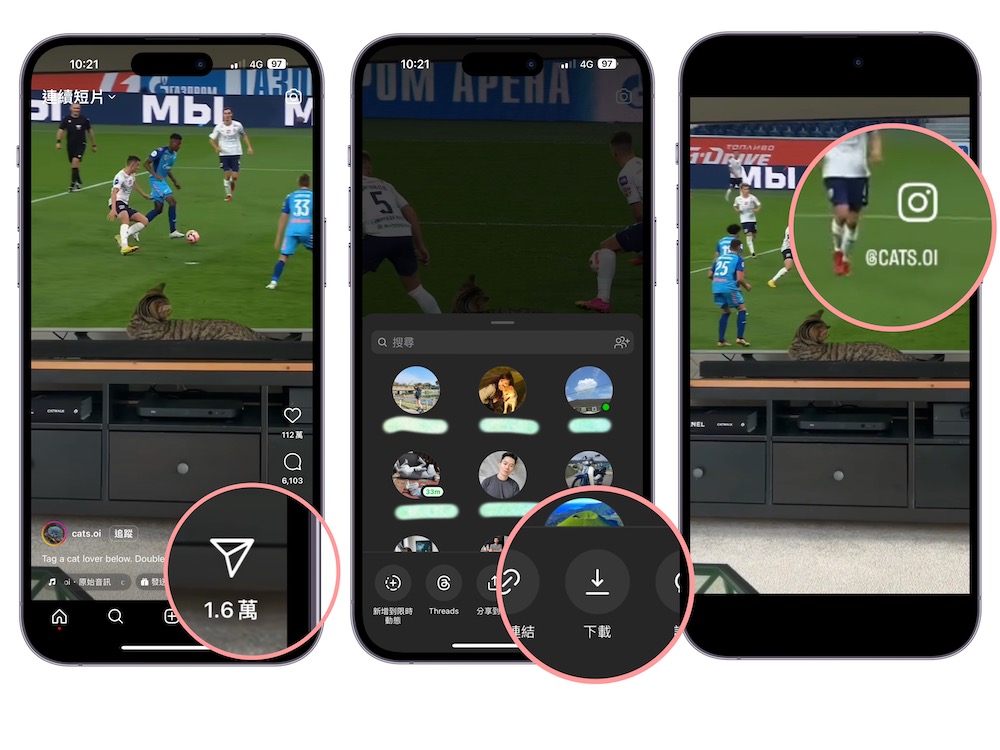 步驟 1、看到自己喜歡想要下載的 IG Reels 短影片後選擇右下角「分享」。