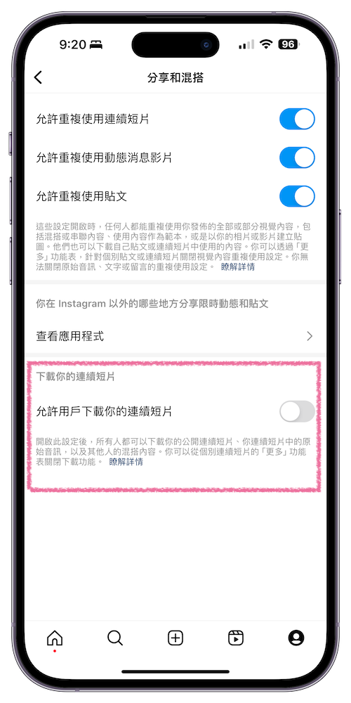 如何開啟或關閉自己 IG Reels 短影片讓別人下載?