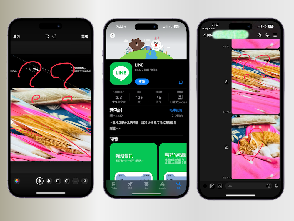 如果也受到 LINE 破圖困擾的朋友,現在就能趕緊更新 LINE 唷!