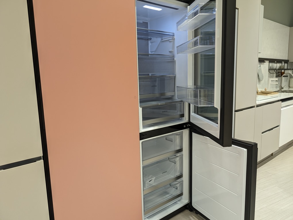 這款冰箱為上冷藏下冷凍的法式冰箱設計,只要敲敲上方的門板,就可以清楚看見裡面的食材,即使有選擇障礙,也不用擔心開著冰箱電力損耗增加,目前這款冰箱將會於台灣上市。