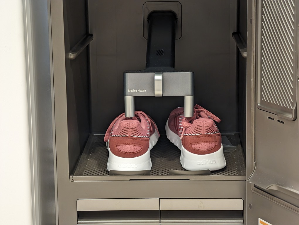 LG Styler ShoeCare 有著可依照鞋型高度調整的層架,每個層架都有著 TrueSteam 蒸氣技術來為鞋子進行清潔、消毒,最後還利用 Zeo-Dry 技術中的沸石幫助鞋體乾燥與消除異味。
