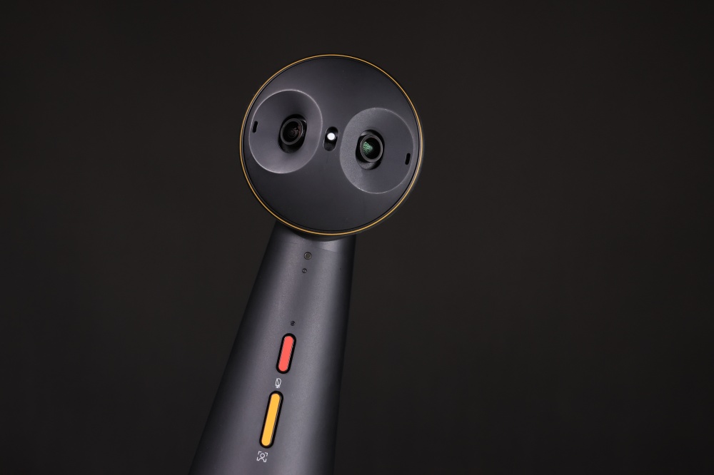 鏡頭設計超像貓頭鷹超可愛,可以支援全景 4.6K 4640×1456@30fps、全景 3.5K 3520×1104@30fps 以及 Full HD 1920×1080@30fps 影像輸出,兩顆眼睛中間還有一個移動式滑桿,可以上下 12 度調整視角。