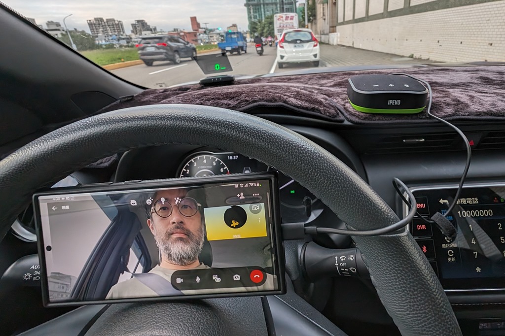 比方說如果在車上需要線上會議的話,只要將 VC-A10 麥克風揚聲器接上手機,就可以馬上開始視訊,會議過程中可以降低環境噪音,像是車輛引擎聲或是其他雜音,讓人聲更清楚,不會因為車輛呼嘯而過聲音就被「蓋台」,把握零碎時間溝通也能有效率。當然再次提醒,如果自己開車一定要先把車停妥才能開始進行會議,不然就是當後座乘客時使用會更好。