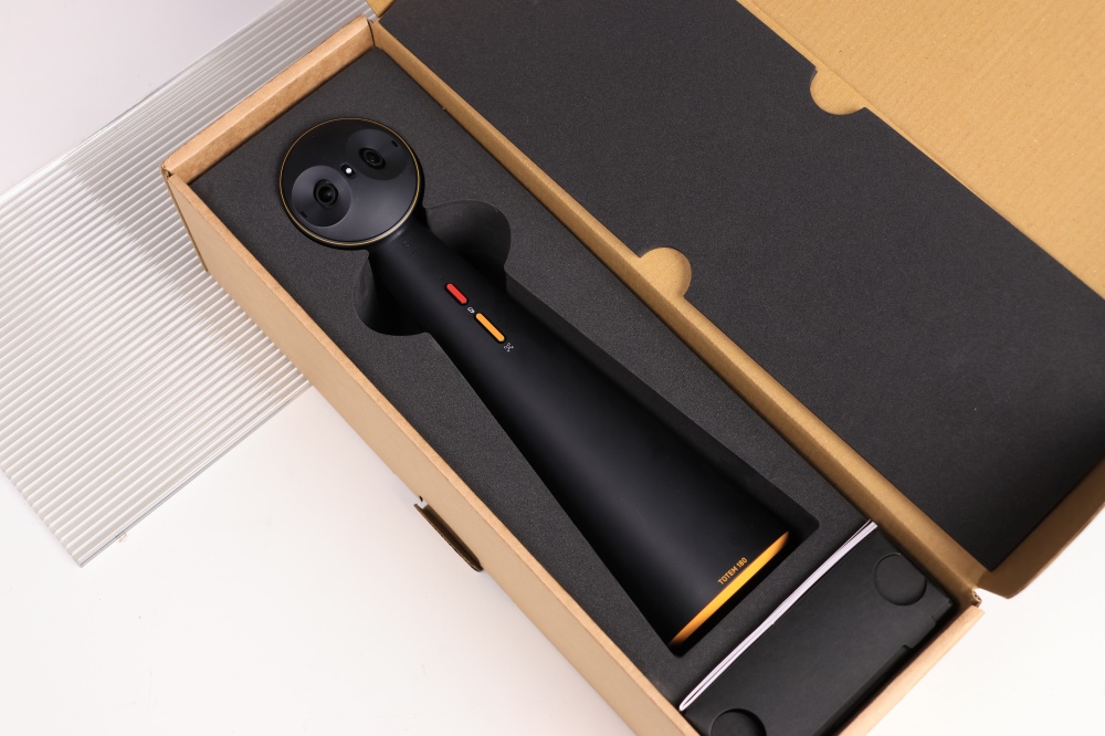 TOTEM 180 全景視訊會議攝影機包裝設計簡約,不過防護做得非常好,穩穩地固定在包裝內,帶著移動也不用怕碰撞損壞。