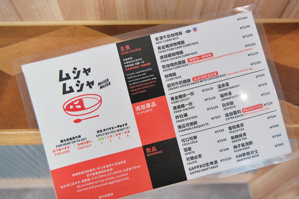Musha Musha 目前有兩間分店,分別在新竹和竹北,新竹店位於武昌街和勝利路交叉口,旁邊是生意很好的原味鴨肉麵,新店面的外觀有一點日式復古感~
