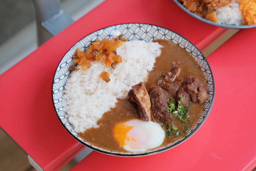 他們的咖哩飯一般都會附蔥花、多力多滋碎片和溫泉蛋,但現在不需要都可在點餐時直接劃單,客製化自己想吃的風味,像我老公不想加多力多滋,看起來就顯得格外單調哈哈,他們家的牛肋條非常軟嫩,也很不錯~